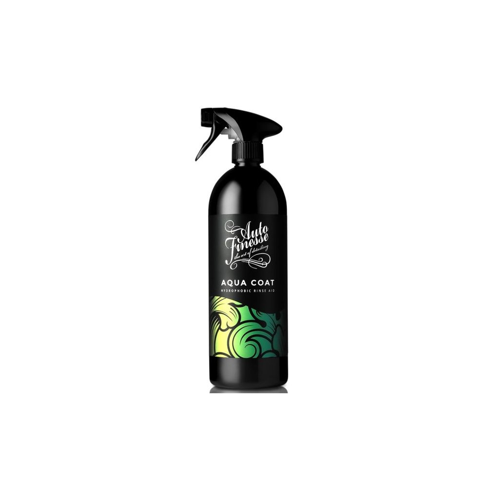 Auto Finesse Aqua Coat je revolučná keramická ochrana v spreji na báze SiO2, ktorá ponúka okamžitú ochranu v priebehu niekoľkých minút. Auto Finesse predstavuje najjednoduchšie aplikovateľnú ochranu na trhu. Po umytí stačí nastriekať na povrch a jednoducho opláchnuť – a je hotovo. Auto Finesse Aqua Coat splní nároky náročných užívateľov, ktorí nehľadajú ochranu len na týždne, ale na mesiace. Aqua Coat bol špeciálne navrhnutý tak, aby zaistil čo najlepší hydrofóbny účinok, samozrejme bez ohľadu na to, či vaše auto má alebo nemá ochranný povlak. Aj takto jednoducho aplikovateľná ochrana dosahuje životnosť 3 až 4 mesiacov. Hlavným prínosom Aqua Coat je jeho univerzálny charakter, ktorý umožňuje použitie na takmer každom vonkajšom povrchu vozidla. Dodá výborné samočistiace vlastnosti nielen laku, ale aj plastovým alebo kovovým dielom, diskom kolies alebo oknám. Vďaka prísadám, ktoré zintenzívňujú lesk, ponúka Aqua Coat aj atraktívny finiš, ktorý nadchne každého. Aqua Coat je tzv. "ready to use" (pripravený na použitie), ďalej sa neriedi a je teda pripravený rovno na použitie. Tak ako všetky produkty Auto Finesse, tak aj Aqua Coat patrí medzi profesionálne produkty určené pre skúsených detailerov. Vďaka vysokej efektivite a jednoduchosti aplikácie dosiahne s týmto prípravkom skvelé výsledky aj začiatočník.