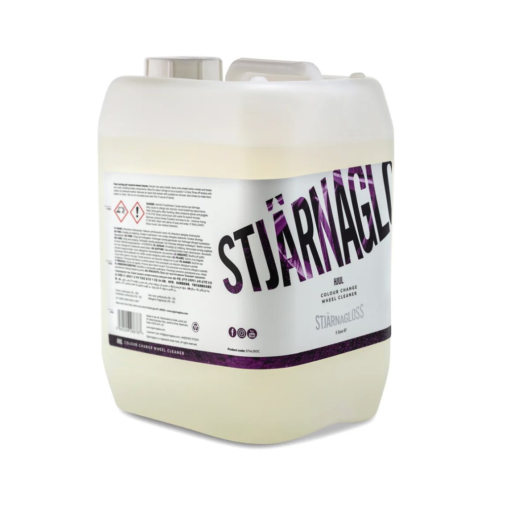 Určite ste už videli čističe kolies, ktoré sa premenia na červenú farbu pri reakcii s kovom. Hjul je ale iný! Stjärnagloss Hjul nie je len tak obyčajný odstraňovač vzdušnej hrdze. Ide o silnejšiu receptúru s obsahom mydla, ktorá odstráni bežnú cestnú špinu a ďalej obsahuje aktívne zložky, ktoré vedia ľahko odstrániť železité brzdové zvyšky. Jeho zloženie obsahuje čistiace látky na odstránenie akejkoľvek špiny, dokonca aj častíc asfaltu a téru. Jedným prípravkom teda dokážete kolesá kompletne vyčistiť a dekontaminovať. Prípravok je pH neutrálny, možno ho teda bez problémov použiť aj na ošetrené kolesá (po použití je nutné dôkladne opláchnuť vodou). Stjärnagloss Hjul možno použiť samozrejme aj na karosérii ako odstraňovač vzdušnej hrdze. Pri karosérii odporúčame nechať pôsobiť len krátku dobu a potom prípravok dôkladne spláchnuť tlakom vody.