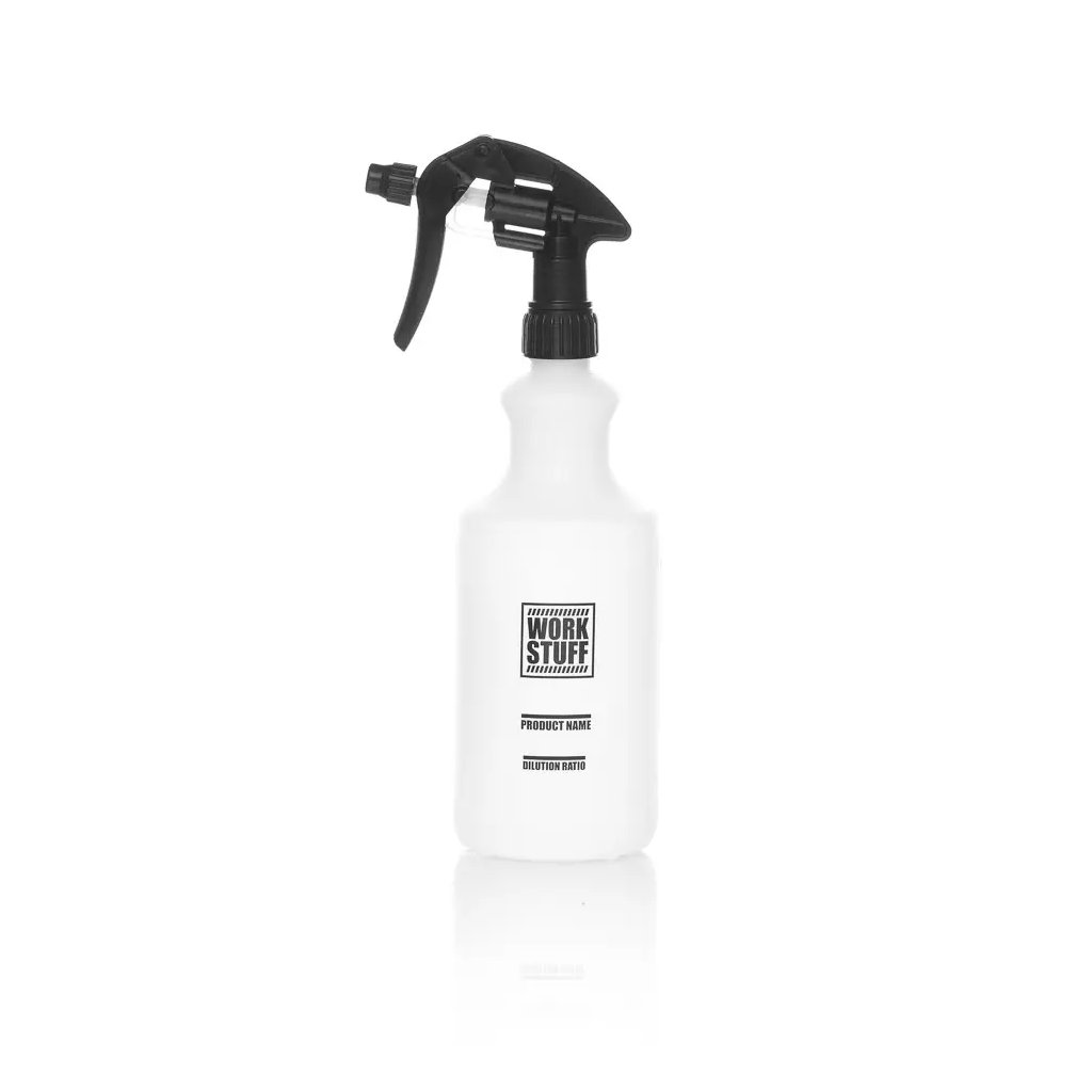 Fľaša s rozprašovačom Work Stuff Work Bottle 1L + Trigger Predstavujeme Work Stuff Work Bottle - dokonalú fľašu pre milovníkov detailingu. Táto všestranná fľaštička s rozprašovačom je ideálna pre ľahké nalievanie, miešanie a riedenie detailingových chemikálií. Fľaša má špeciálnu oblasť na označenie produktu a tlačenej miery, vďaka čomu je jej použitie neuveriteľne pohodlné. Vytlačené miery na fľaši zaisťujú presné pomery riedenia, zatiaľ čo možnosť tlače namiesto použitia štítku uľahčuje prispôsobenie fľaše vašim potrebám. Navyše je sada dodávaná so značkovým rozprašovačom Canyon, ktorý do vášho arzenálu pridáva nádych štýlu a funkčnosti. Pracovná fľaša vyrobená z vysokohustotného polyetylénu (HDPE) je vyrobená tak, aby vydržala a odolala aj tým najdrsnejším chemikáliám. Vyberte si z dvoch praktických objemov: 750 ml a 1 liter tak, aby vyhovovali vašim špecifickým potrebám. Či už ste profesionálny detailer, alebo len víkendový nadšenec, Work Bottle je základným nástrojom, ktorý patrí do každej sady autokozmetiky. Hlavné vlastnosti Prázdna fľaša s rozprašovačom. Materiál HDPE. Tlačené miery - stupnica. Tlač namiesto štítku. Rozprašovač Caynon súčasťou. Objem 1000 ml. O značke Work Stuff Work Stuff je veľmi známa značka na poli príslušenstva pre detailing, ktorá si postupne buduje skvelé renomé po celom svete. Jej cieľom je poskytnúť všetkým ľuďom na svete a každému nadšencovi do detailingu kvalitné príslušenstvo a vybavenie, ktoré funguje, uľahčuje prácu, napĺňa jeho vášeň k detailingu a vydrží roky. Detailing je pre túto značku viac než len čisté auto, ponúka aj výrazné zjednodušenie každodennej práce na automobile. Značku Work Stuff často používajú práve samotní profesionálni detaileri, ktorí väčšinou vsádzajú na to najlepšie vybavenie, aby pri svojej práci dosahovali kvalitné výsledky. Značka Work Stuff neustále rozširuje a vylepšuje svoje produkty, aby mohla vyhovieť potrebám všetkým, ktorí detailing milujú.Dodatočné parametre