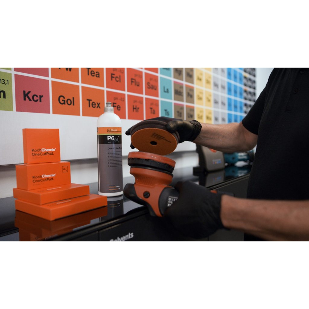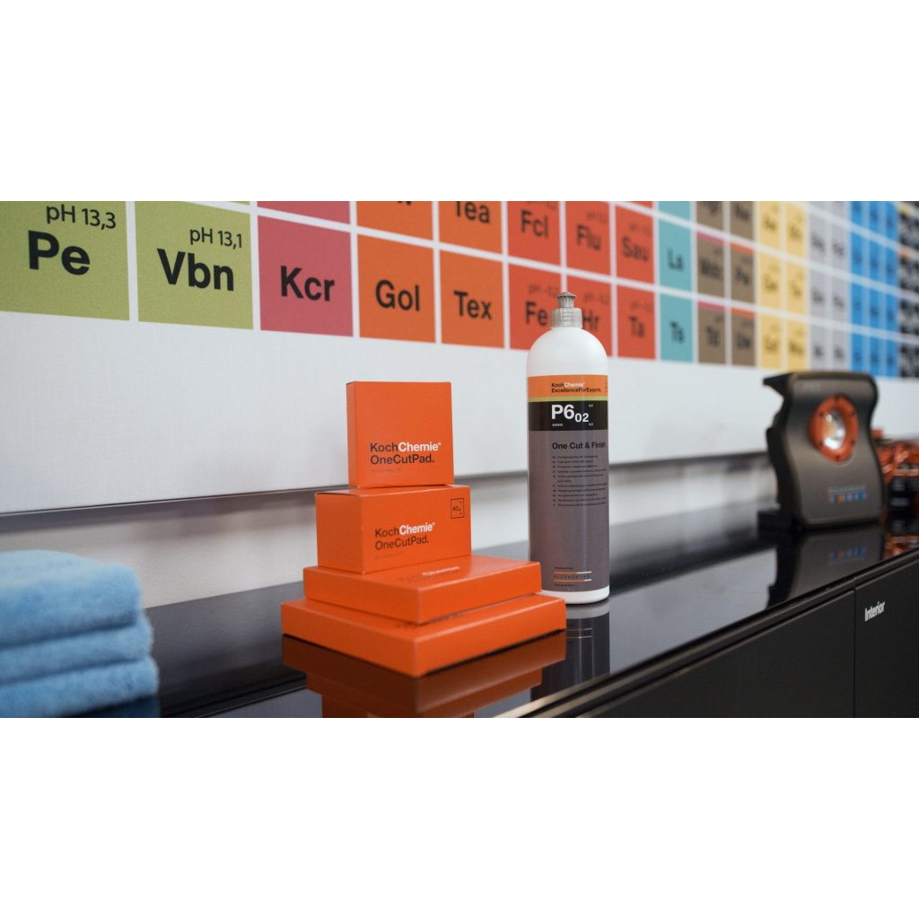 One Cut & Finish P6.02 je strojová leštiaca pasta na trvalé odstránenie leštiacej hmly; hologramov a škrabancov; ako aj brúsenie zo zrnitosti P 2000 so súčasným konzervačným účinkom. Brilantný a odolný povrch s vysokým leskom je vytvorený použitím homogénnych abrazív. Inovatívny One Cut & Finish P6.02 kombinuje optimálny pomer abrazivity a lesku pre ekonomickú a efektívnu prácu pri príprave vozidiel. One Cut & Finish P6.02 je ekonomická; ľahko sa leští a ľahko doleštuje. Obsahuje karnaubský vosk a neprchavé silikóny.- Stupeň brúsenia: 6;0