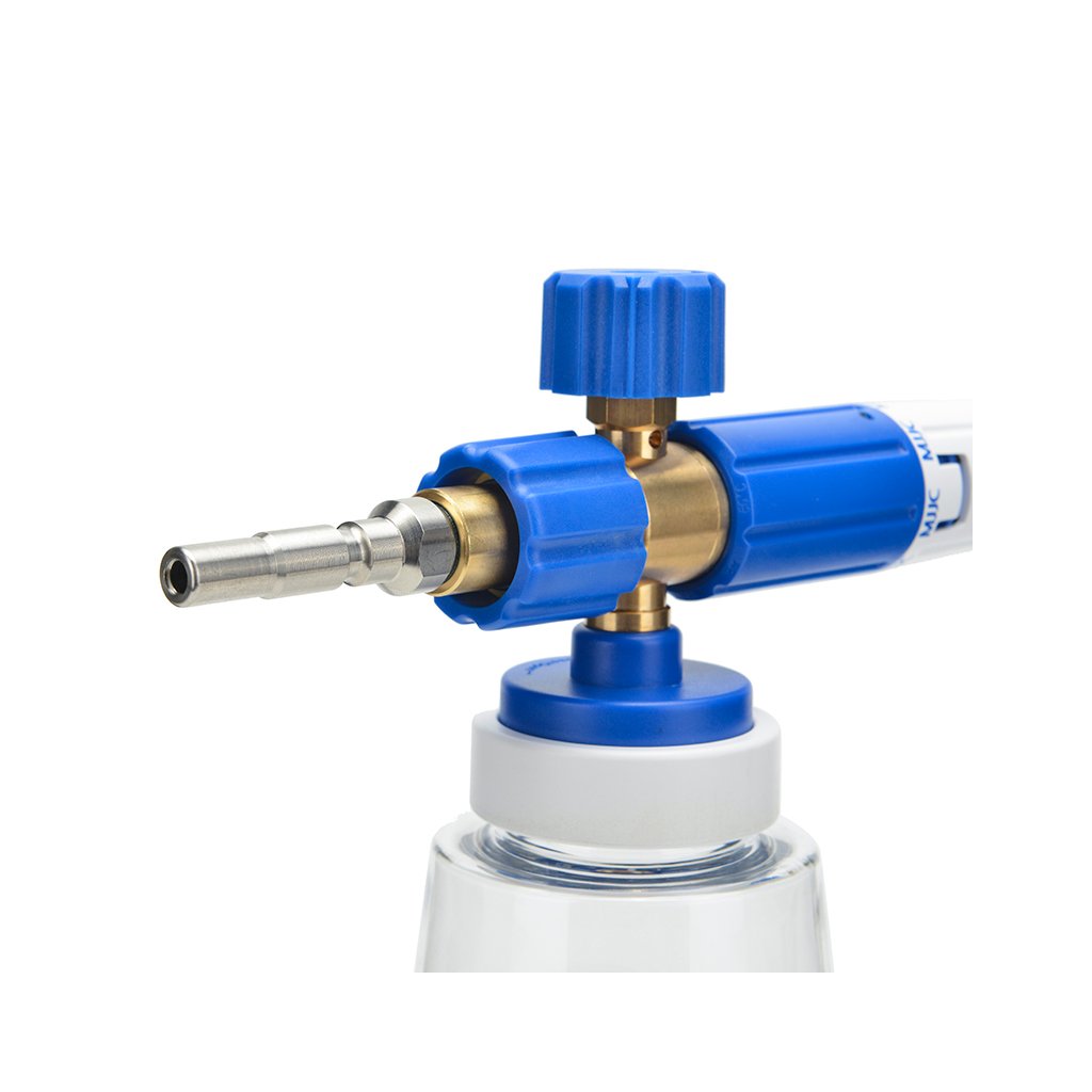 MJJC Foam Cannon S V3.0 mení spôsob umývania áut a je nevyhnutné pre bezpečné umývanie! Tento napeňovač funguje podľa Venturiho efektu, kde sa čistiaci prostriedok nasáva z 1-litrovej fľaše. V kombinácii s dobrou aktívnou penou ľahko vytvoríte hrubú vrstvu peny, ktorá pôsobí na povrchu po dlhú dobu.