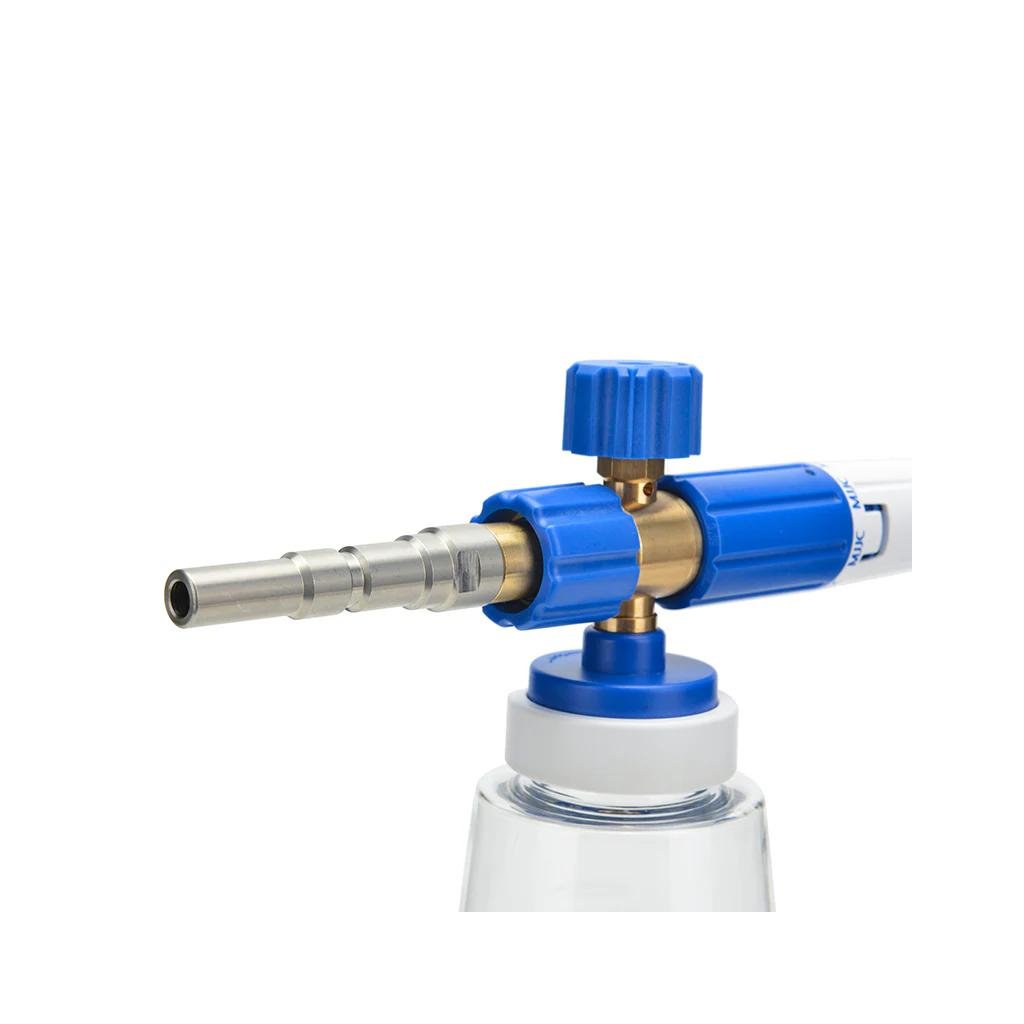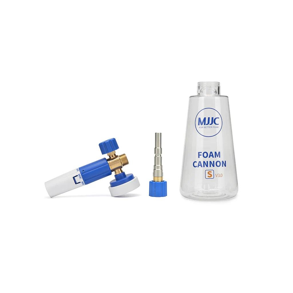 MJJC Foam Cannon S V3.0 mení spôsob umývania áut a je nevyhnutné pre bezpečné umývanie! Tento napeňovač funguje podľa Venturiho efektu, kde sa čistiaci prostriedok nasáva z 1-litrovej fľaše. V kombinácii s dobrou aktívnou penou ľahko vytvoríte hrubú vrstvu peny, ktorá pôsobí na povrchu po dlhú dobu.