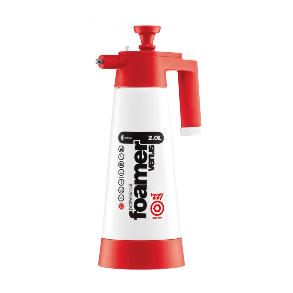 Napeňovač Kwazar Venus Super Foamer HD ACID LINE 2 l + Extra Foam Endings Ručný napeňovač Kwazar Venus Super Foamer ACID je zariadenie so zvýšenou odolnosťou voči kyslým prípravkom, určené na aplikáciu peniacich činidiel. Používa sa v umývačkách a garážach automobilov, najmä pri predbežnom umývaní áut alebo čistení kolies a motorových priestorov. Je tiež ideálny pre spoločnosti, ktoré poskytujú upratovacie služby, rovnako ako pre domáce práce, ako sú umývanie okien, zrkadiel, záhradnej infraštruktúry a iných povrchov, ktoré vyžadujú použitie penových chemikálií. Môže byť tiež použitý na bodové čistenie fasád budov. Hlavné vlastnosti Sada obsahuje 3 plniace hroty pre hustú, strednú a tenkú penu. Poistný ventil - tlak vždy pod kontrolou. Pohodlná rukoväť - pracujte pohodlne. Indikátor hladiny kvapaliny - ľahko dávkujte kvapalinu a kontrolujte hladinu v nádrži. Stabilizačný krúžok - stabilizácia a ochrana nádrže proti mechanickému poškodeniu. FPM tesnenie. Pracovný tlak - 0,22 MPa. Kapacita - 2 l. O značke Kwazar, špecialista na postrekovače, je značka, ktorá sa priamo špecializuje na vysokokvalitné, ale cenovo dostupné postrekovacie fľaše. Pýtate sa, ako spolu tieto veci súvisia a čo majú spoločné postrekovače a detailné práce? Veľa autokozmetiky sa dnes dá kúpiť vo výhodných baleniach s objemom až päť litrov. Často je to cenovo výhodnejšie a v takom prípade má zmysel pridať k tomuto veľkému baleniu kvalitný rozprašovač. Postrekovače sú chemicky odolné, vydržia podstatne dlhšie, skvele sa s nimi manipuluje a práca s nimi ide hladšie. V porovnaní s bežnými komerčnými postrekovačmi máte v ruke profesionálny nástroj!Dodatočné parametre