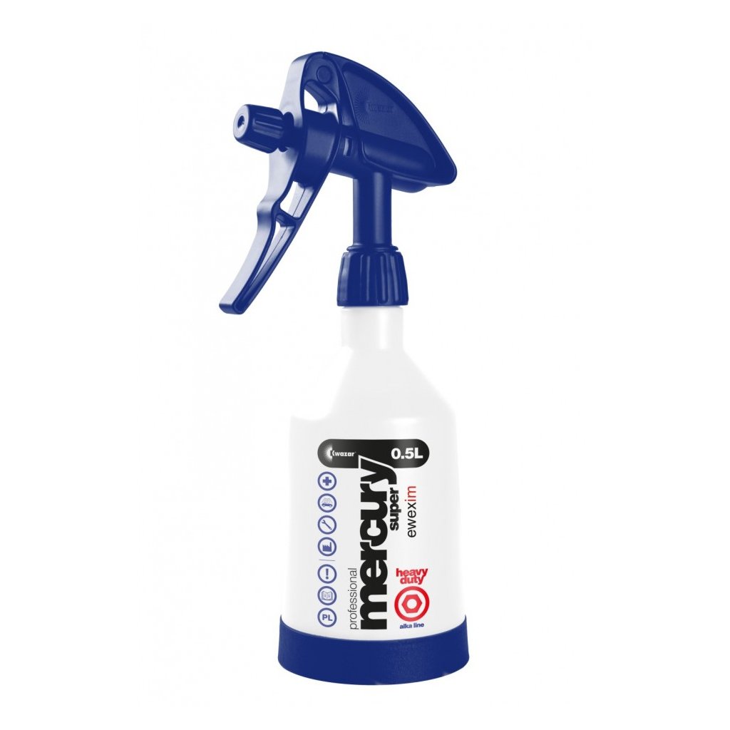Postrekovač Kwazar Mercury SUPER HD ALKA LINE 0,5 l Postrekovač z radu Heavy Duty so zvýšenou chemickou odolnosťou, určený na aplikáciu alkalických prípravkov hojne používaných napr. v dielňach, v priemysle, pri spracovaní potravín. Ideálne na čistenie a dezinfekciu povrchov, čistenie sanitárnych a nemocničných miestností, čistenie oceľových konštrukcií na lodiach, súčasťou lietadiel, čistenie podláh, stien, fasád vo výrobných halách, skladoch, priemyselných objektoch, odmasťovanie náradia a motorov, odstraňovanie olejov, mastnoty, sadzí v priemyselných kuchyniach. Konštrukcia zariadenia a EPDM tesnenie zaisťujú odolnosť a dlhú životnosť postrekovača. Hlavné vlastnosti Super Double Action - aplikácia pri stlačení a uvoľnení páky pumpy. Nastaviteľná tryska - nastavenie stupňa atomizácie kvapaliny od hmly až po kontinuálny prúd. Indikátor hladiny kvapaliny - ľahko dávkujte kvapalinu a kontrolujte jej hladinu v nádrži. EPDM tesnenie. Kapacita - 0,5 l. Hmotnosť - 140 g. Výška - 28 cm. O značke Kwazar, špecialista na postrekovače, je značka, ktorá sa priamo špecializuje na vysokokvalitné, ale cenovo dostupné postrekovacie fľaše. Pýtate sa, ako to spolu súvisí a čo majú spoločné postrekovače a detailing? Veľa autokozmetiky sa dnes dá kúpiť vo výhodných baleniach s objemom až päť litrov. Často je to cenovo výhodnejšie a v takom prípade má zmysel pridať k tomuto veľkému baleniu kvalitný postrekovač. Postrekovače sú chemicky odolné, vydržia oveľa dlhšie, skvele sa s nimi manipuluje a práca s nimi ide hladšie. V porovnaní s bežnými komerčnými postrekovačmi máte v ruke profesionálny nástroj!Dodatočné parametre