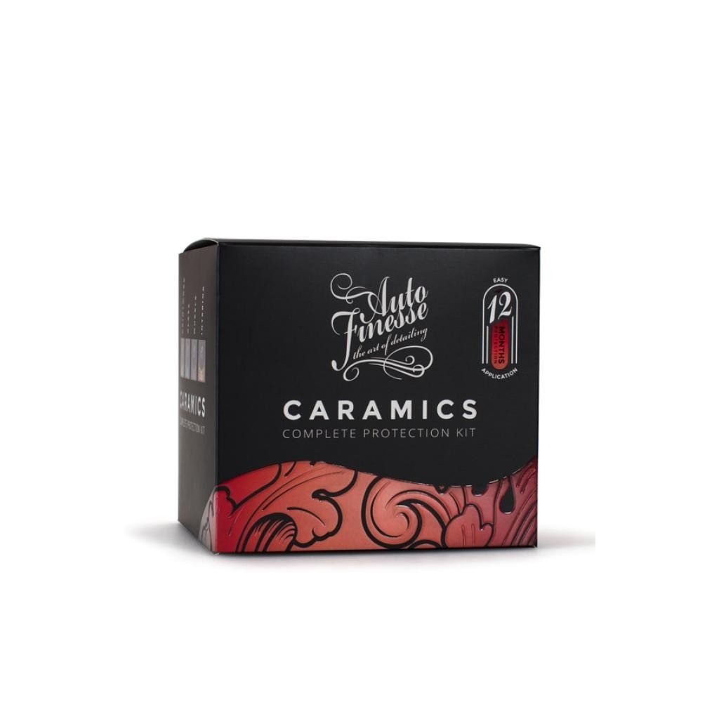 Dlhotrvajúca ochrana a lesk pre celé vozidlo so životnosťou 12 mesiacov. Caramics sú keramické povlaky, ktoré sa naviažu na povrchy a ponúkajú tým špičkovú mechanickú ochranu, zrýchlia odvod vody a nečistôt, a uľahčia následné čistenie a umývanie. S radom Caramics sa Auto Finesse stáva priekopníkom v jednoduchosti aplikácie a v efektivite v rámci skladovania. Ako prvý výrobca totiž neponúka ochranu v klasickom balení malých fľaštičiek, kedy ste jednoducho odkázaní na okamžitú spotrebu. Zatiaľ čo pri konkurenčných produktoch nespotrebovaná ochrana skryštalizuje priamo v balení, zvyšný Caramics môžete bez problémov uskladniť a použiť v budúcnosti alebo pri aplikácii na iné vozidlo. Caramics Coating sú zamerané na nezvyčajne ľahkú aplikáciu, ktorú zvládne každý. Žiadny problém s nanášaním, žiadne zdĺhavé stieranie. Vďaka napusteným utierkam odpadá aj starosť o prípadnú nadmernú spotrebu. Caramics Kit neobsahuje len coatingy ako také, ale kompletné a nutné prípravky na prípravu či zotretie. Navyše obsahuje aj ochranné pomôcky, ako nitrilové rukavice a pod.