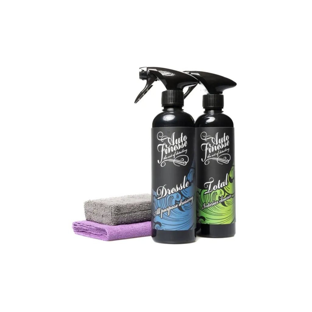 Sada na čistenie a oživenie interiéru od Auto Finesse Vysoko kvalitná sada na čistenie a oživenie farieb interiéru automobilu obsahujúca efektívny, šetrný čistič plastových a látkových povrchov a oživujúci sealant na plastové časti s antistatickým efektom od Auto Finesse. Sada obsahuje aj aplikátor a mikrovláknovú utierku od nemeckého výrobcu The Collection. Možnosti použitia čističa Auto Finesse Total Interior Cleaner Čistenie plastu, pryže a gumy Pri malom znečistení nastriekajte prípravok na mikrovláknovú utierku a ľahko povrch čistite. Druhou stranou utierky potom vytrite do sucha. Pri silnom znečistení nastriekajte prípravok priamo na povrch a ponechajte pár sekúnd pôsobiť. Môžete povrch čistiť aj jemným detailingovým štetcom. Následne povrch zotrite mikrovláknovou utierkou, potom do sucha opačnou stranou utierky (príp. použite utierku novú). Po vyčistení odporúčame použiť interiérový detailer Auto Finesse Spritz, ktorý skvele povrch ošetrí a zamedzí ďalšiemu vyblednutiu. V prípade, keď sú interiérové plasty vyblednuté, aplikujte na povrch prípravok Auto Finesse Dressle. Čistenie textilných povrchov Total nastriekajte priamo na postihnuté miesto a ponechajte 1 až 2 minúty pôsobiť. V prípade, keď ide o silné znečistenie, čistite povrch jemnou detailingovou kefou. Po vyčistení vytrite povrch mikrovláknovou utierkou s dlhým vláknom. Po vytretí zvyšku prípravku jemne navlhčite povrch nastriekaním čistej vody (malé množstvo) a opäť vytrite čistou utierkou. Nechajte prirodzene vyschnúť, dvere auta nechajte vždy otvorené. Čistenie textilných povrchov od krvi a olejov Nastriekajte priamo na postihnuté miesto a ponechajte 1 až 3 minúty pôsobiť. Použite jemnú kefu, ktorú najprv namočte v čistej vode a následne čistite krúživými pohybmi. Postihnuté miesto zvhlčite rozstrekom čistej vody a následne vytierajte uvoľnenú špinu a zvyšky produktu vlhkou utierkou s dlhým vláknom. Vytierajte dovtedy, kým nezostane aj po vytretí utierka čistá. Nechajte prirodzene vyschnúť, dvere auta ponechajte otvorené. Postup aplikácie Auto Finesse Dressle All Purpose Dressing Ošetrované povrchy vždy najskôr dôkladne vyčistite. V interiéri napríklad pomocou Auto Finesse Total, v exteriéri potom pomocou čističa Auto Finesse Verso. Povrch musí byť pred aplikáciou dokonale suchý. Prípravok nastriekajte na mikrovláknový alebo pokojne aj na penový aplikátor a rovnomerne rozotrite po povrchu. Ponechajte 2 až 3 minúty zavädnúť. Následne zotrite mikrovláknovou utierkou. Sada na čistenie a oživenie interiéru od Auto Finesse obsahuje 1x interierový čistič Auto Finesse Total Interior Cleaner (500 ml). 1x sealant na plasty Auto Finesse Dressle All Purpose Dressing (500 ml). 1x mikrovláknovú utierku The Connection Allround 40x40 cm Lile. 1x mikrovláknový aplikátor The Collection Sponge. O značke Značka Auto Finesse vznikla v roku 1999 pod názvom JB's Valeting Service. V roku 2005 došlo k premenovaniu na Auto Finesse a nasledovalo dlhé testovanie a pokusy. V roku 2011 došlo k predstaveniu prvého uceleného radu produktov, ktorý obsahoval 7 základných detailingových prípravkov. Vďaka rastúcemu záujmu o značku Auto Finesse došlo v roku 2013 k rozšíreniu pôsobnosti aj mimo Spojeného kráľovstva. Dnes je možné produkty zakúpiť prakticky po celom svete (vrátane Thajska, Mexika alebo Austrálie). V roku 2019 došlo k ďalšiemu míľniku značky v podobe založenia Akadémie pre milovníkov detailingu. V súčasnosti je Auto Finesse pravdepodobne najpopulárnejšou značkou na svete, a to nielen vďaka perfektnej skladbe sortimentu s kvalitnými produktmi, ale aj vďaka prepracovanému marketingu a pôsobivému designu.Dodatočné parametre