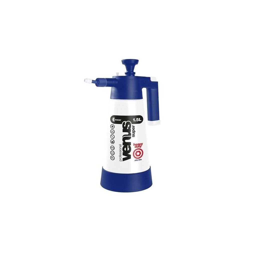 Tlakový postrekovač Kwazar Venus Super HD ALKA LINE 1,5 l Tlakový postrekovač z radu Heavy Duty so zvýšenou chemickou odolnosťou, určený na aplikáciu alkalických prípravkov hojne používaných napr. v dielňach, v priemysle, pri spracovaní potravín. Ideálne na čistenie a dezinfekciu povrchov, čistenie sanitárnych a nemocničných izieb, čistenie oceľových konštrukcií na lodiach, súčasťou lietadiel, čistenie podláh, stien, fasád vo výrobných halách, skladoch, priemyselných objektoch, odmasťovanie náradia a motorov, odstraňovanie olejov, mastnoty, sadzí v priemyselných kuchyniach. Konštrukcia zariadenia a EPDM tesnenie zaisťujú odolnosť a dlhú životnosť postrekovača. Hlavné vlastnosti Nastaviteľná špička - uľahčuje dosiahnutie ťažko dostupných miest. Nastaviteľná tryska - umožňuje nastaviť stupeň atomizácie tekutiny (od hmly po prúd). Poistný ventil - riadi tlak v nádrži a chráni ju pred "prečerpaním". Pohodlná rukoväť - špeciálne navrhnutá pracovná ergonómia. Lišta hladiny kvapaliny - uľahčí dávkovanie a kontrolu hladiny kvapaliny v nádrži. Stabilizačný krúžok - stabilizuje a chráni nádrž pred poškodením. EPDM tesnenie. Kapacita - 1,5 l. Tlak - 2,2 bar. Hmotnosť - 570 g. Výška - 33 cm. O značke Kwazar, špecialista na postrekovače, je značka, ktorá sa priamo špecializuje na vysokokvalitné, ale cenovo dostupné postrekovacie fľaše. Pýtate sa, ako spolu tieto veci súvisia a čo majú spoločné postrekovače a detailné práce? Veľa autokozmetiky sa dnes dá kúpiť vo výhodných baleniach s objemom až päť litrov. Často je to cenovo výhodnejšie a v takom prípade má zmysel pridať k tomuto veľkému baleniu kvalitný rozprašovač. Postrekovače sú chemicky odolné, vydržia podstatne dlhšie, skvele sa s nimi manipuluje a práca s nimi ide hladšie. V porovnaní s bežnými komerčnými postrekovačmi máte v ruke profesionálny nástroj!Dodatočné parametre