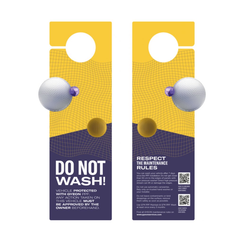 Visiace upozornenie je vhodným pomocníkom pre profesionálnych detailerov, ktorí robia svoju profesiu maximálne starostlivo a chcú si byť istí, že ani zákazník nič nezanedbá alebo nepoškodí. Toto visiace upozornenie má za úlohu odradiť zákazníka, aby auto umýval, pokiaľ je na vozidle aplikovaná PPF fólia.